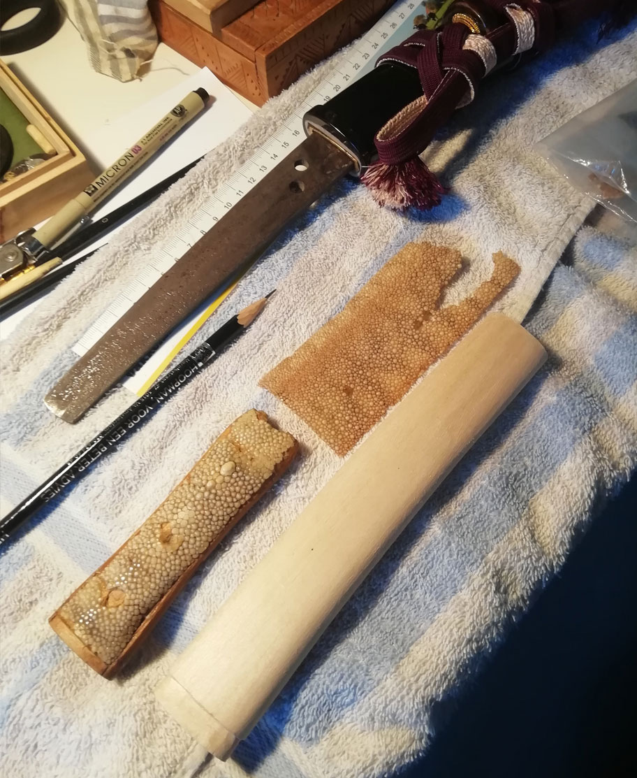 Koshirae (fittings and scabbard) restoration. Please see the restoration page for details.